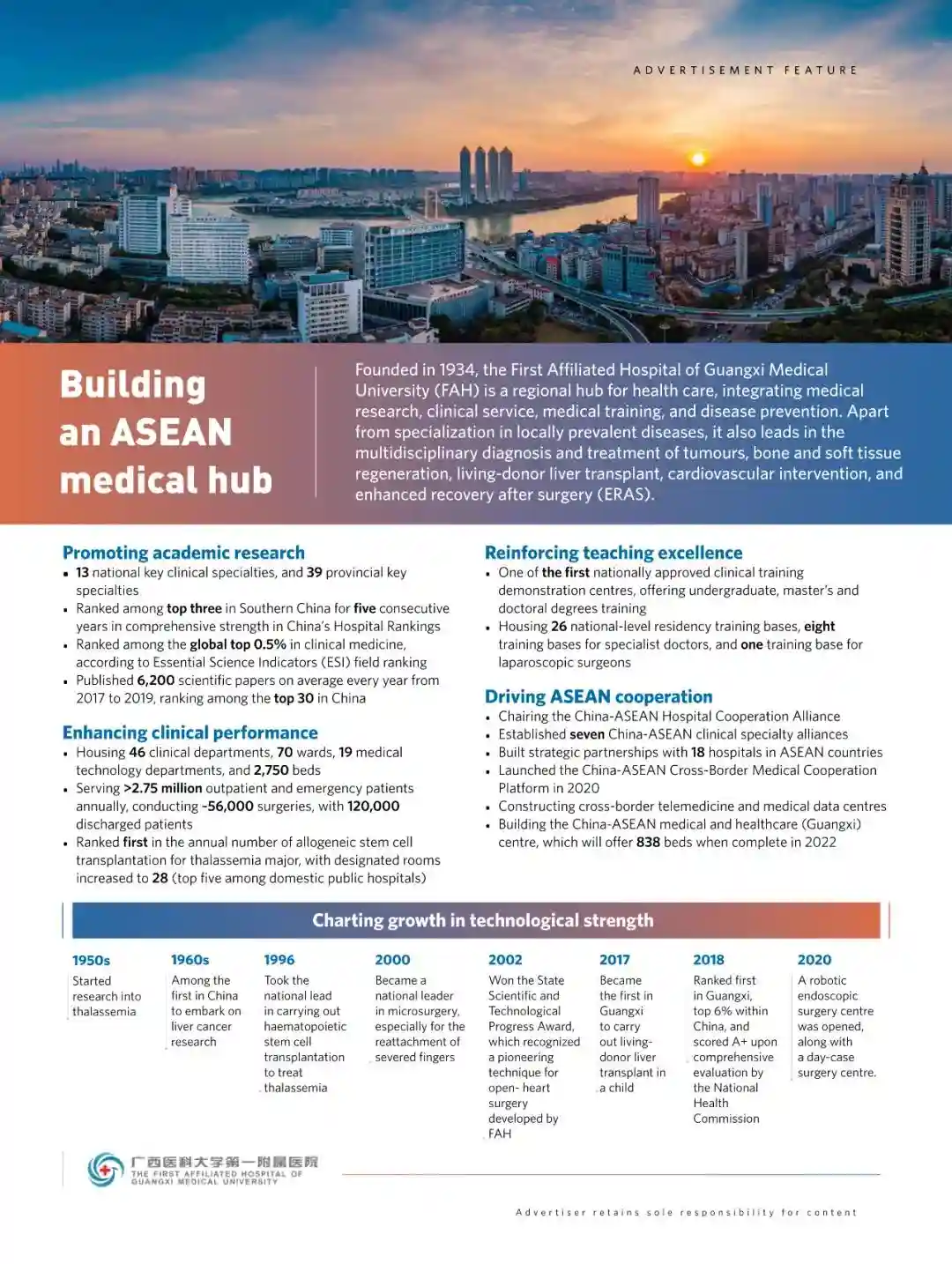 面对东盟国家6亿人口催生出规模庞大的海外就医需求,广西医科大学第一附属医院率先发起建立跨境医疗合作平台,就是要立足广西的区位优势,充分发挥自身专业优势,相邀各方伙伴共同合作,将优质医疗资源辐射服务到东盟国家,为双边搭建健康丝绸之路出一份力量。
